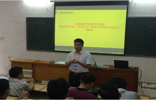 2016年9月5日下午,電氣應(yīng)用系2015級(jí)電子技術(shù)全體同學(xué)在8號(hào)樓104階梯教室召開赴西可分校學(xué)習(xí)動(dòng)員會(huì)。參加此次動(dòng)員大會(huì)的有教務(wù)科科長楊耀雄、電氣應(yīng)用系主任張雪峰、電氣應(yīng)用系副主任鐘偉東以及電子技術(shù)教研組的全體老師與相關(guān)班主任。
