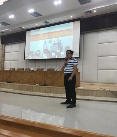 隨后,機電制造系鐘偉東老師作“校企雙制班的組織與管理——以電子技術專業(yè)為例”主題講座。他介紹了校企雙制的八個“共同”、雙制班課程體系結構、學生中段實習管理等內(nèi)容,并結合自己的教學經(jīng)驗,分享了校企雙制班組建及管理模式的流程:雙制班組建動員會、雙制班技能培訓、雙制班赴企業(yè)實習等,最后還分享了雙制班建設的成效。
