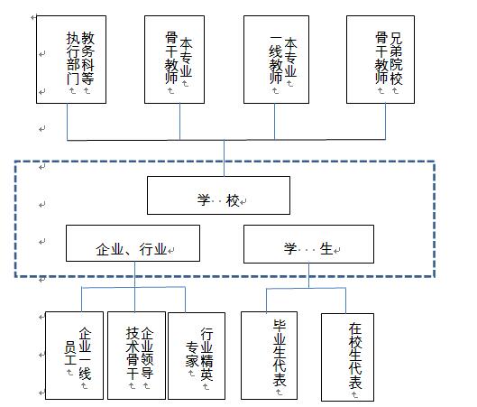 專業(yè)建設(shè)指導(dǎo)委員會是制定專業(yè)課程的核心組織和課程開設(shè)的執(zhí)行機(jī)構(gòu),該委員會成員需要涵蓋企業(yè)、行業(yè)和學(xué)校,負(fù)責(zé)該專業(yè)教學(xué)計劃的制定、實施、檢查和調(diào)整。