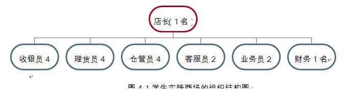 2009年下半年,河源技師學(xué)院與中國移動(dòng)河源分公司合作在校建立了“學(xué)生實(shí)踐商場”,該實(shí)訓(xùn)平臺(tái)主要提供給電子商務(wù)一年級(jí)學(xué)生,完成線下營銷技能的訓(xùn)練。學(xué)生實(shí)踐商場的商品齊全,其管理及運(yùn)作過程完全由學(xué)生來完成,指導(dǎo)老師根據(jù)制定的實(shí)訓(xùn)任務(wù)對學(xué)生進(jìn)行輔導(dǎo),以達(dá)到預(yù)定的實(shí)訓(xùn)效果。學(xué)生實(shí)踐商場的運(yùn)作過程也是模擬現(xiàn)實(shí)中超市的運(yùn)作標(biāo)準(zhǔn)來執(zhí)行,包括實(shí)訓(xùn)崗位、崗位職責(zé)、管理制度等。學(xué)生實(shí)踐商場的組織結(jié)構(gòu)圖及實(shí)訓(xùn)項(xiàng)目流程圖分別如圖4-1、圖4-2: