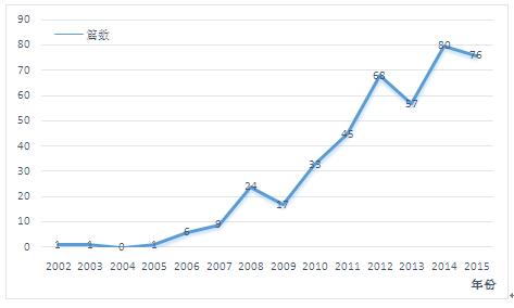 圖1 2002-2015年中職旅游教育研究數(shù)量