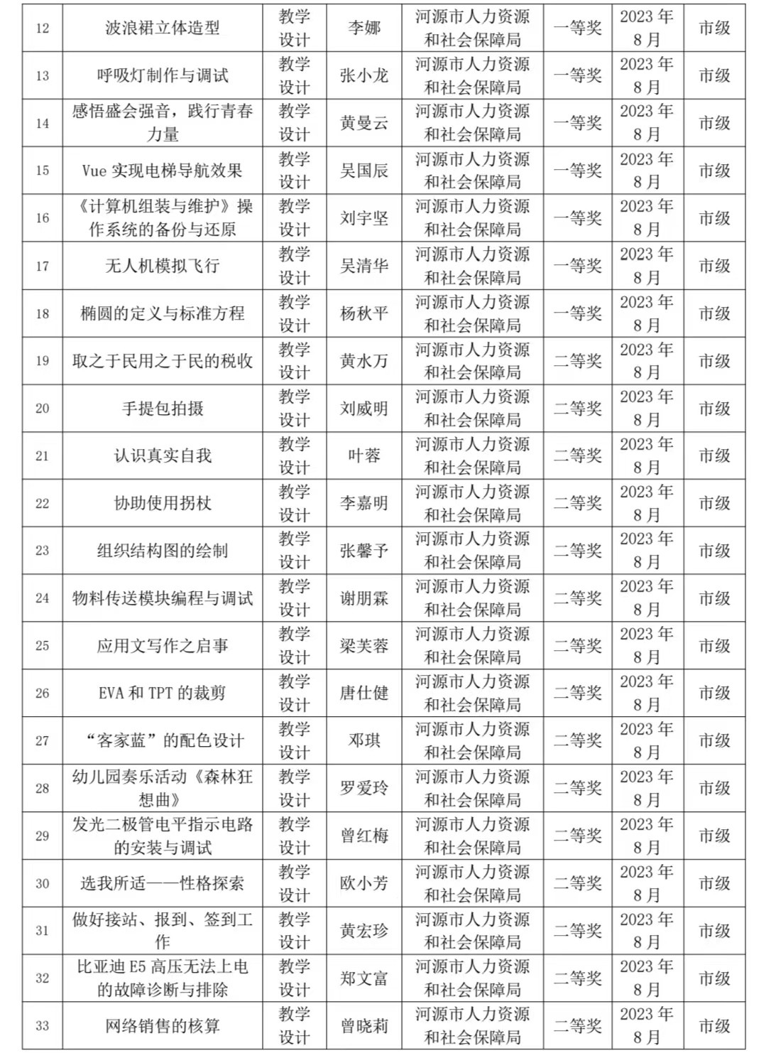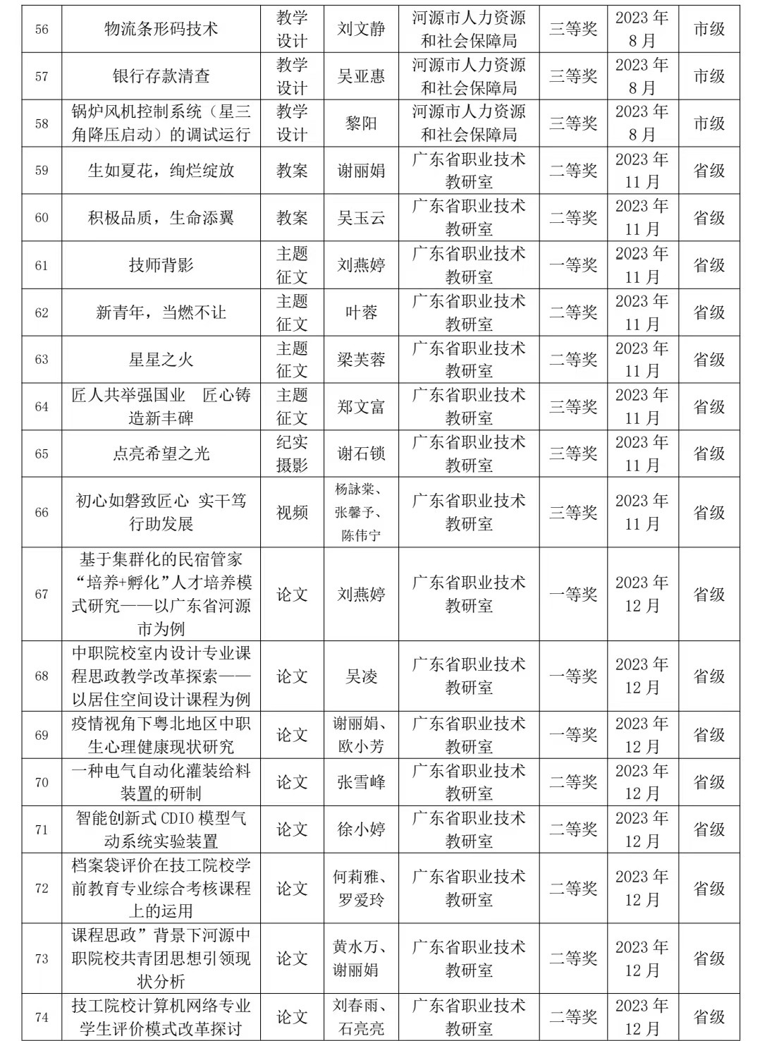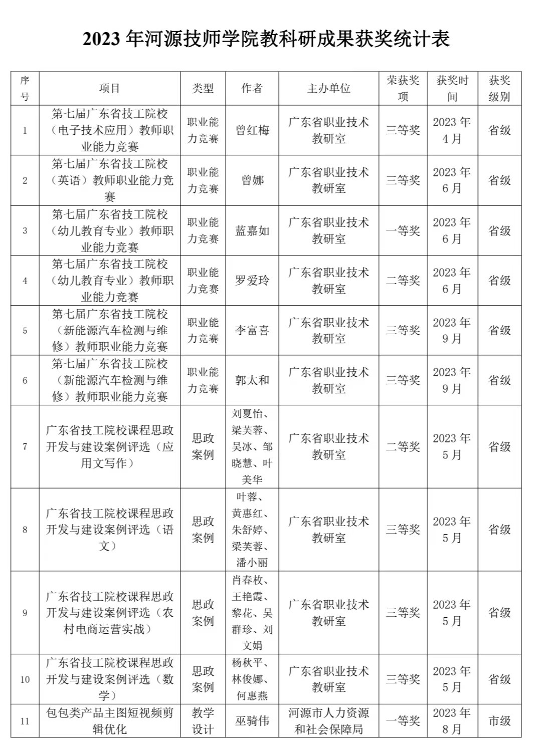 2023年河源技師學院教科研成果獲獎統(tǒng)計