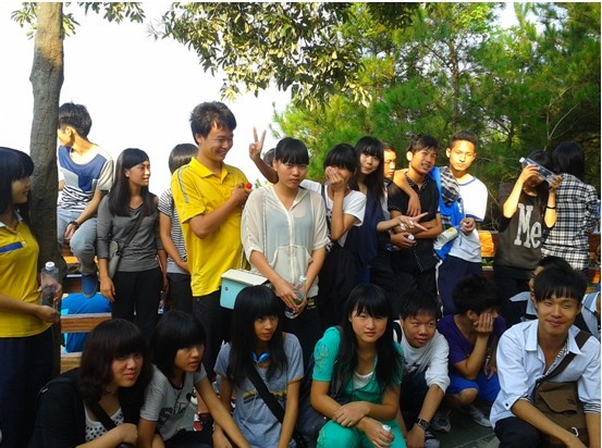 (圖二)同學(xué)們在山頂合影留念