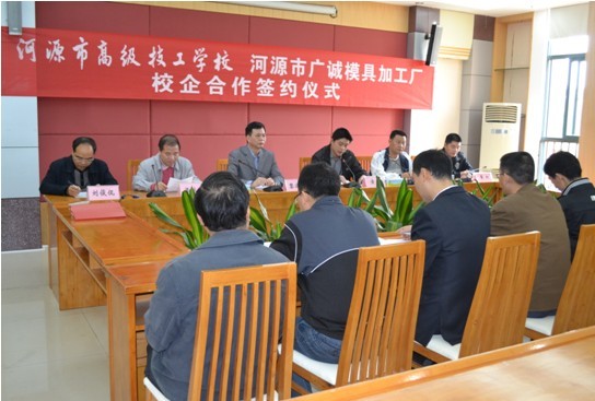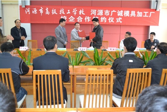 簽約儀式上,黃挺廠長介紹了企業(yè)概況。他表示,河源市廣誠模具加工廠將結(jié)合自身的發(fā)展需要,為學(xué)校模具專業(yè)建設(shè)和發(fā)展提供便利條件,爭取合作共贏。梁秋生副校長則表示,我校與河源市廣誠模具加工廠雙方正式簽約,標(biāo)志著校企雙方的合作邁上了新的臺階,這必將進(jìn)一步推動(dòng)校企合作向深度拓展。我校將努力發(fā)揮自身優(yōu)勢,深化校企合作,爭創(chuàng)一流的校企合作示范基地。