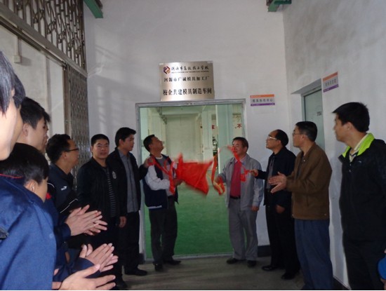 (圖三)梁秋生副校長與廣誠模具加工廠李衛(wèi)東總監(jiān)為“校企共建模具制造車間”揭牌