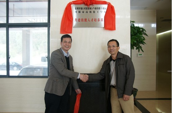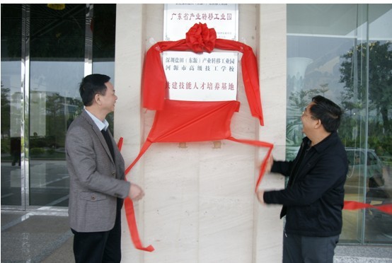 (圖三)黎海波校長為我校與深圳羅湖(河源源城)產業(yè)轉移工業(yè)園技能人才培養(yǎng)基地揭牌