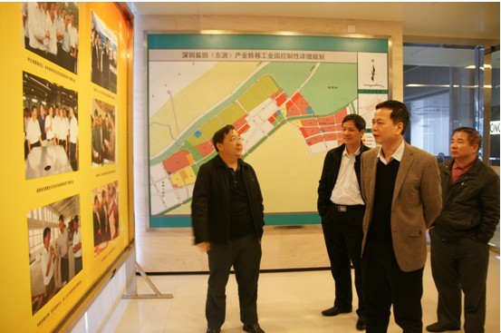 (圖四)深圳鹽田(東源)產業(yè)轉移工業(yè)園代表正為我校到訪一行介紹園區(qū)規(guī)劃情況