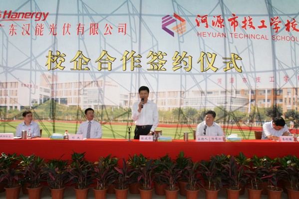 漢能控股集團(tuán)常務(wù)副總裁、廣東漢能光伏有限公司董事長劉民表示,廣東漢能光伏有限公司將利用自身的產(chǎn)業(yè)優(yōu)勢,與河源市技工學(xué)校的人才優(yōu)勢相結(jié)合,探索出一條發(fā)展四新產(chǎn)業(yè),培養(yǎng)高素質(zhì)人才的校企合作新模式,為振興河源地方經(jīng)濟(jì)作出應(yīng)有的貢獻(xiàn)。