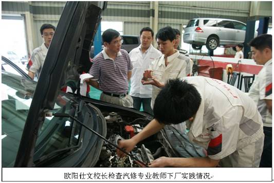 歐陽(yáng)仕文校長(zhǎng)一一看望了在匯源集團(tuán)各個(gè)工作崗位參加生產(chǎn)實(shí)踐的汽修專業(yè)老師,仔細(xì)檢查了老師的出勤情況、實(shí)習(xí)日志,聽(tīng)取了老師們學(xué)習(xí)匯報(bào)。他指出,教師下廠實(shí)踐不僅是國(guó)家和省的要求,更是教師個(gè)人實(shí)現(xiàn)自我增值,提升自身職業(yè)水平的機(jī)會(huì)。全體專業(yè)教師要充分感受企業(yè)文化,提高職業(yè)素養(yǎng),鍛煉專業(yè)技能,并將在企業(yè)實(shí)踐中所學(xué)的知識(shí)融入到教育教學(xué)中去,身體力行,影響教育學(xué)生。