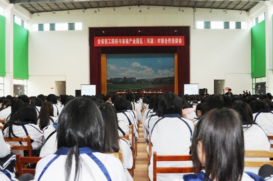 12月20日,全省技工院校與省級(jí)產(chǎn)業(yè)園區(qū)對(duì)接合作洽談會(huì)在我校隆重舉行。市委常委、副市長楊耀初同志到會(huì)作重要講話,省人力資源和社會(huì)保障廳技工教育管理處處長劉正讓同志就舉辦此次活動(dòng)的重要意義和目的作深刻闡述。會(huì)議由市政府副秘書長邱榮輝同志主持,市委組織部副部長、市人力資源和社會(huì)保障局局長朱蔚蔚同志、市經(jīng)濟(jì)和信息化局局長張志純同志出席了座談會(huì)。17家省屬技工學(xué)校及廣州市屬技工學(xué)校與我市逾百家企業(yè)參加了此次洽談會(huì)。會(huì)上,各技工院校與各企業(yè)商談合作事宜。通過深入交流,我校已與漢能光伏、西可通信等28家企業(yè)初步達(dá)成了合作共識(shí)。