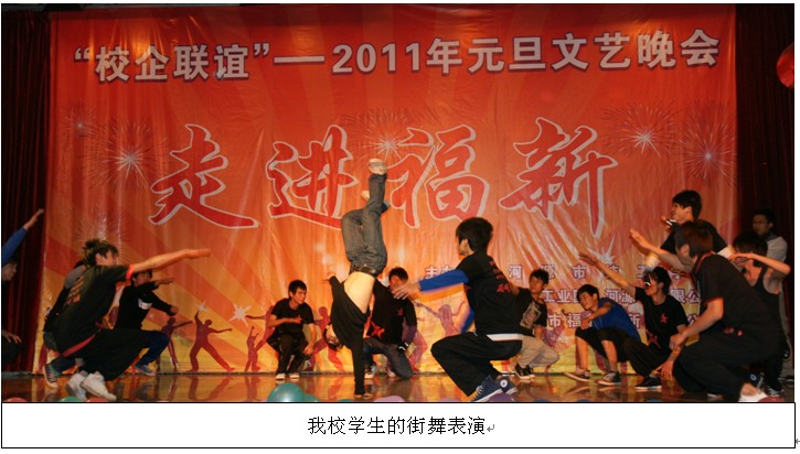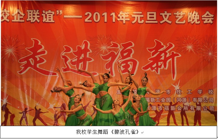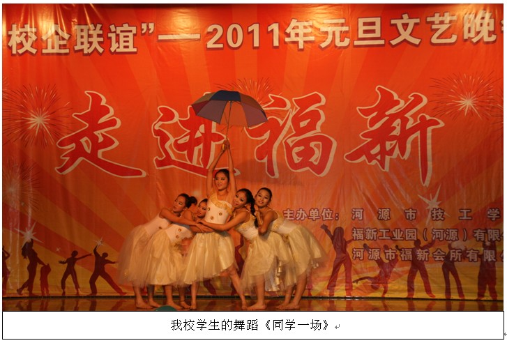 12月29日,我校與福新國際集團在福新文藝中心舉行校企聯(lián)誼2011年元旦文藝晚會。我校領導與福新國際集團領導觀看了本場晚會。